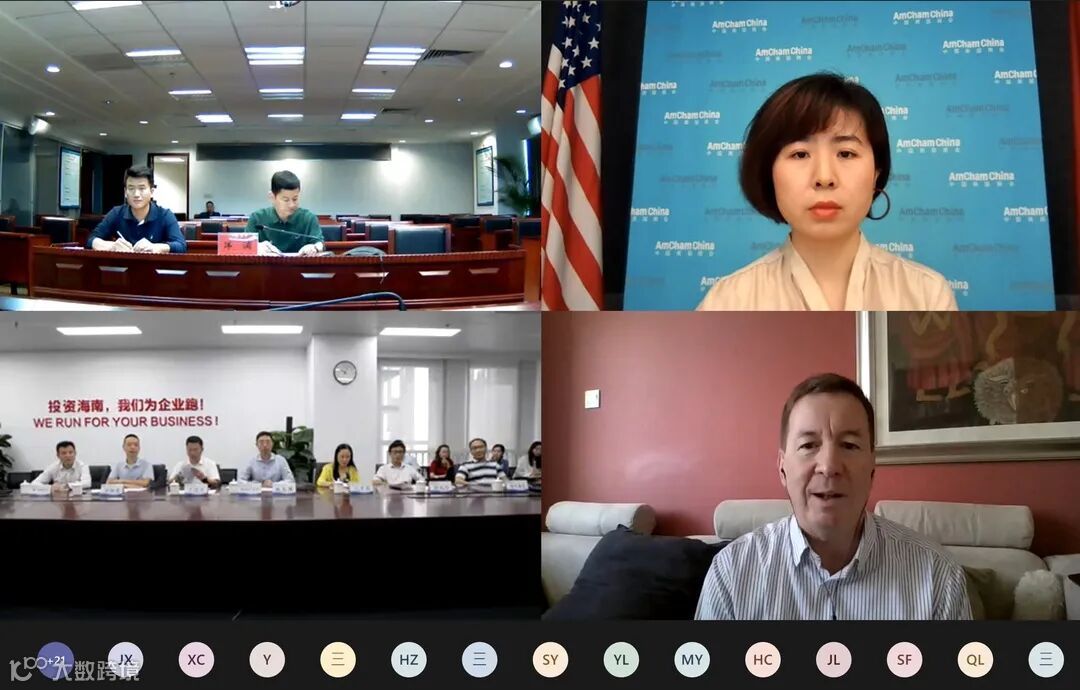 2020年6月12日,海南国际经济发展局(以下简称“海南国际经发局”)联合中国美国商会通过视频方式为美国企业举办海南自贸港政策优惠及投资机遇推介会。中国美国商会主席葛国瑞,以及3M公司、BP中国、施耐德电气、星巴克中国、英特尔中国、艾默生、华纳兄弟、埃克森美孚(中国)投资有限公司、等50余家美国企业参加。