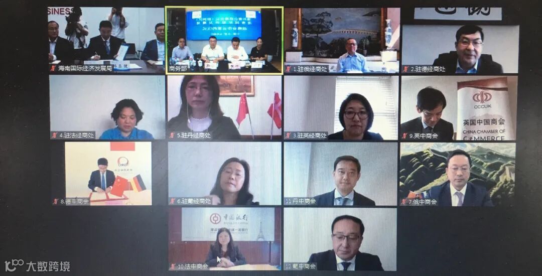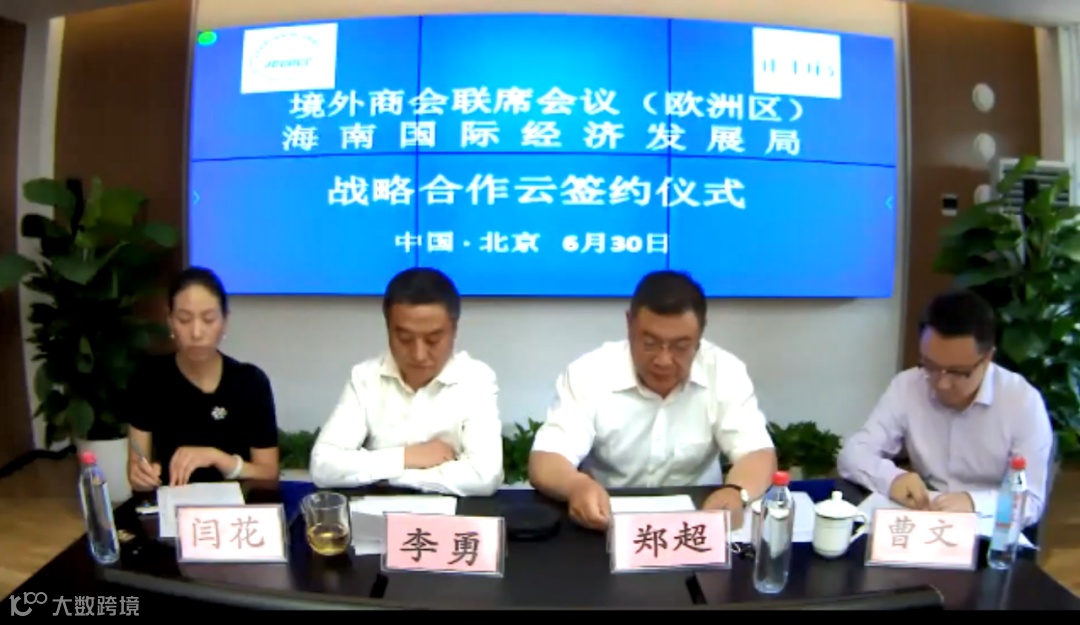商务部投资促进事务局副局长李勇主持活动,他表示今年6月3日,在商务部钱克明副部长和海南省沈丹阳副省长的见证和参与下,境外商会联席会议及亚洲地区的5家成员单位与海南国际经发局签订了战略合作备忘录,开创了“境外商会+地方机构”互利合作新模式,今日再次相聚云端,进一步推动欧洲地区的6家境外商会参与海南自贸港建设,势必将推动高质量高标准建设海南自贸港和境外商会高质量发展。