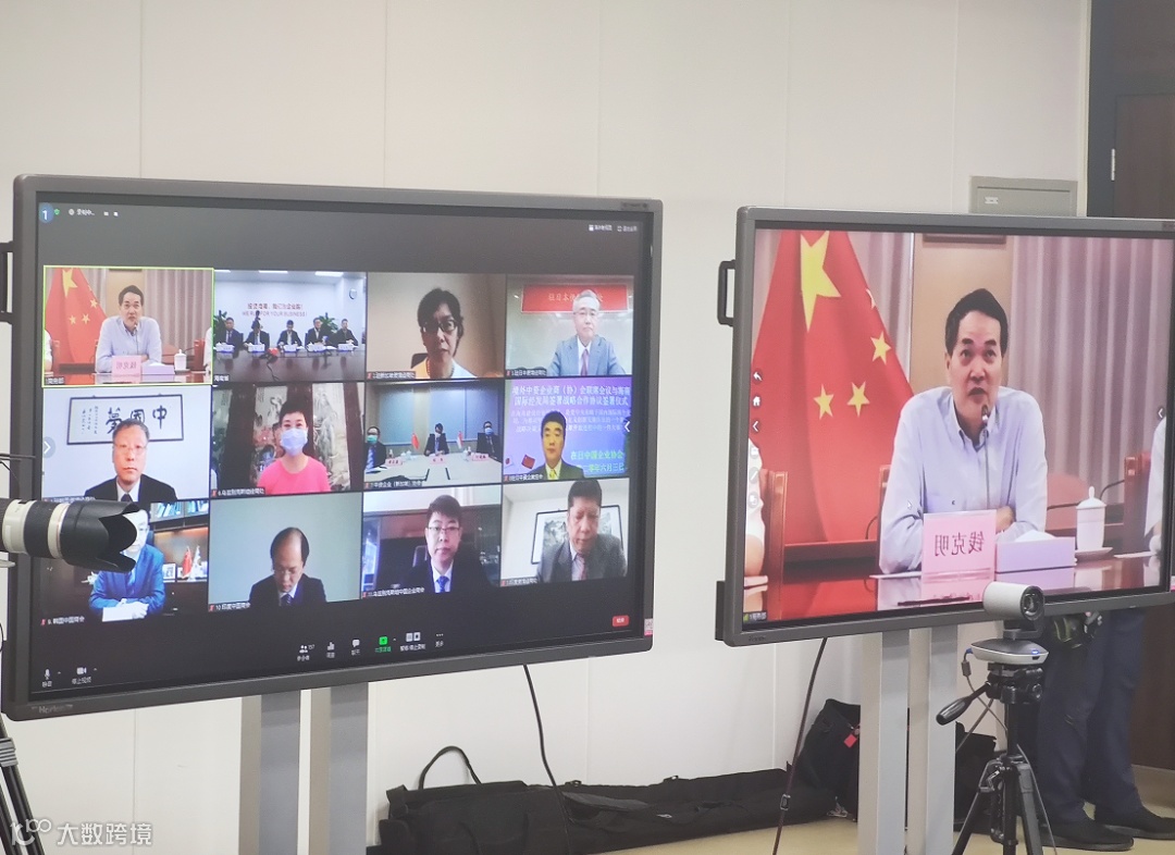 2020年6月3日下午,首批境外中资企业商(协)会联席会议成员与海南国际经发局战略合作签约仪式暨海南自贸港重点产业投资机遇推介会在海南国际经济发展局通过“云视频”方式举办。商务部副部长钱克明、海南省副省长沈丹阳出席活动并致辞。新加坡、日本、韩国、印度、乌兹别克斯坦等50多个国家的境外中资商会会长和成员企业代表以及相关驻外经商机构负责人共200余人参加了视频会议。海南国际经发局局长韩圣健介绍了海南自贸港重点产业投资机遇。