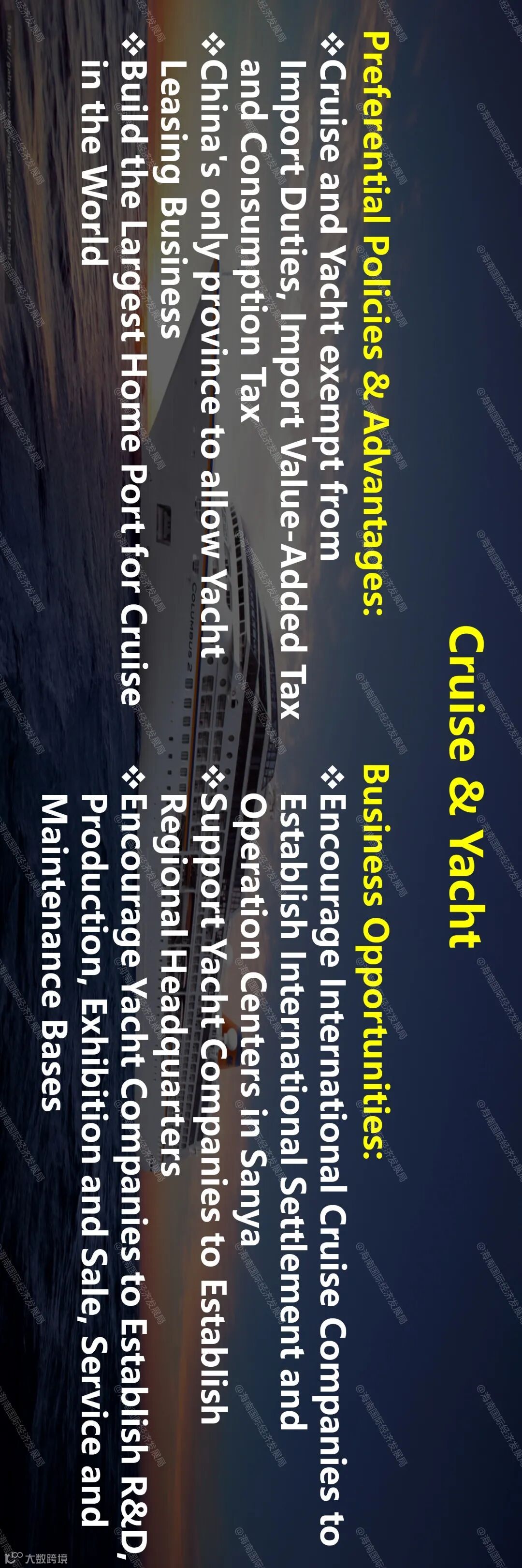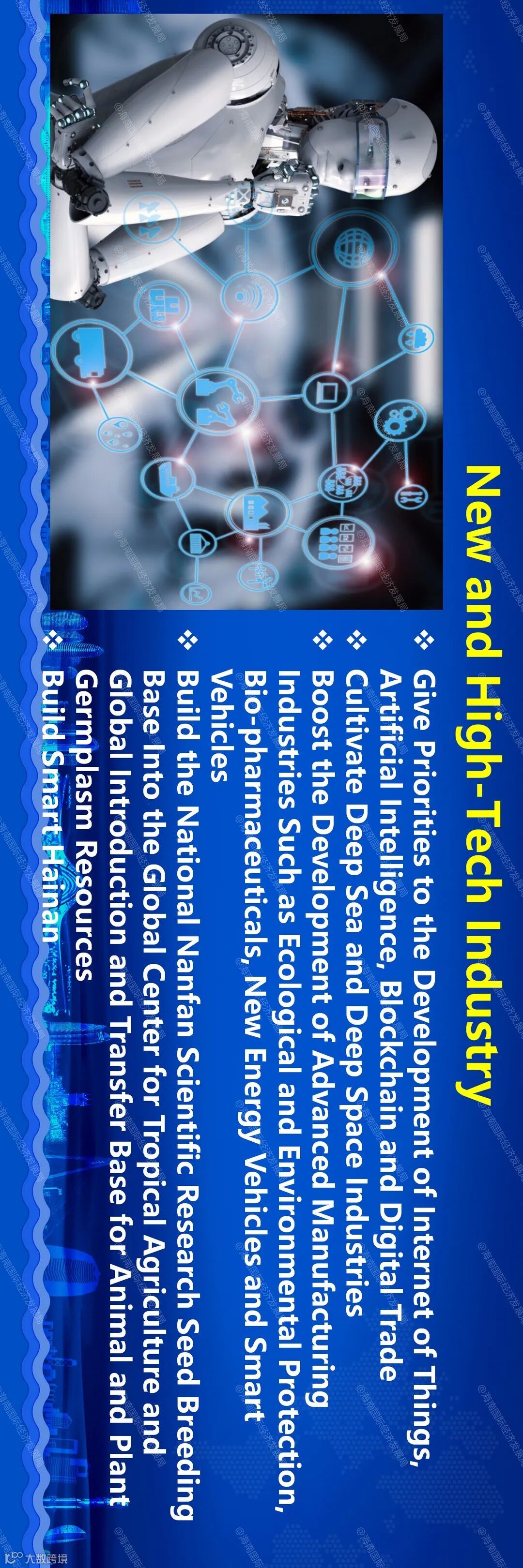 On June 1, 2020, the Overall Plan for Hainan Free Trade Port is officially released to the world. Hainan Free Trade Port will align itself with high-level global economic and trade rules, and become a flagship of China's opening-up and a key opening door in the new era, while focusing on trade and investment facilitation, forging ahead the opening process in stages and good order, and achieving early harvest through early arrangements. To help you get a clear picture of the investment opportunities for key industries, Hainan Provincial Bureau of International Economic Development along with the Hainan Department of Commerce will be interpreting the Overall Plan for Hainan Free Trade Port in the upcoming series. We welcome investors from all over the world to invest in Hainan, actively participate in the construction of Hainan Free Trade Port, share new opportunities and benefit from the achievements of China's reform and opening up.