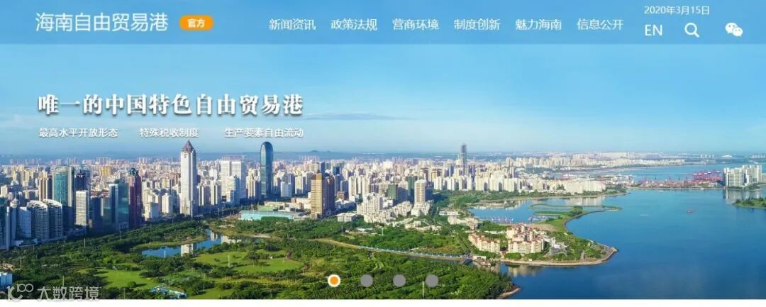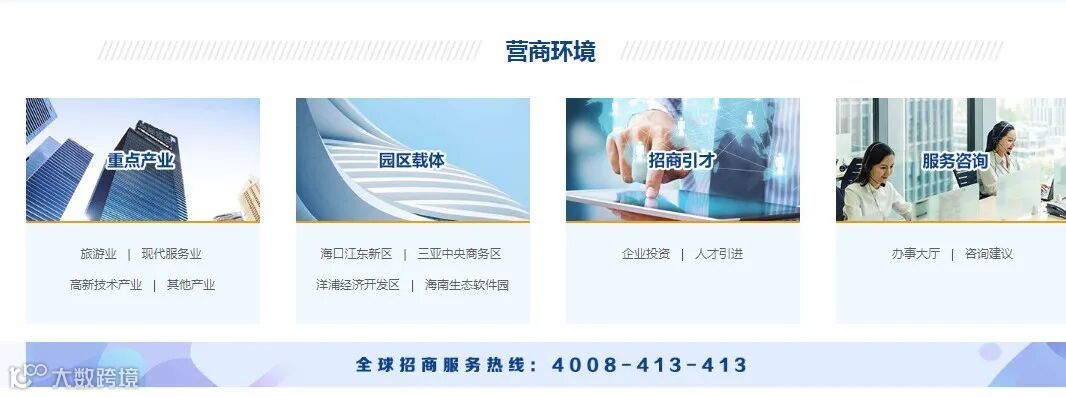 网站设置新闻资讯、政策法规、营商环境、制度创新、魅力海南等5大主要功能板块。