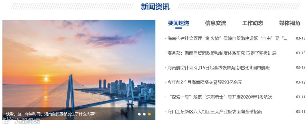 新闻资讯板块通过要闻速递、信息交流、工作动态、媒体视角等不同角度,及时传递海南自由贸易港建设的最新进展。