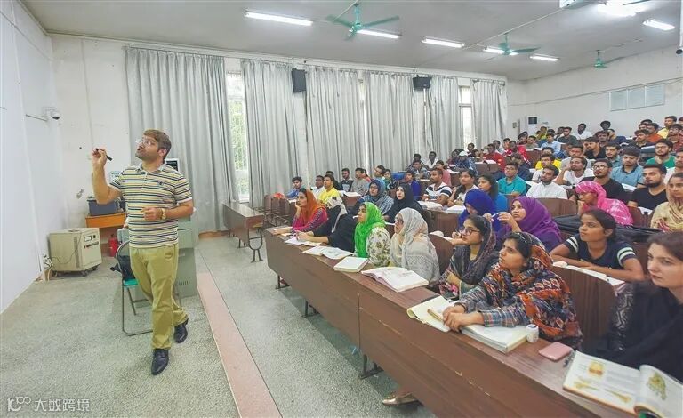 来自巴基斯坦的外籍老师吉米在海南医学院给学生们上课
