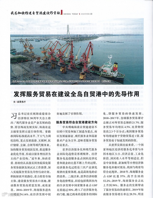 服务贸易符合自贸港建设方向