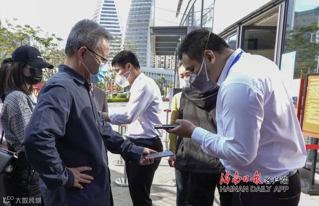 日月广场、新城吾悦广场内的部分服装、日用品、餐饮及免税店等正在有序恢复营业。沈晓明以普通消费者身份,随机走进几家店铺,了解防控措施及恢复营业后人流、销售情况。各店铺在入口处均设置了检查点,但是防控措施和标准不一,有的需要扫描个人健康码并测量体温,有的需要填写个人信息及测量体温,有的仅需测量体温。沈晓明指出,部分检查点多人共用一支笔登记个人信息,存在交叉感染隐患,要大力推广使用海南健康一码通,实行扫码进出商场、无接触式信息采集,既方便顾客,又能让检查人员可以快速识别、记录。