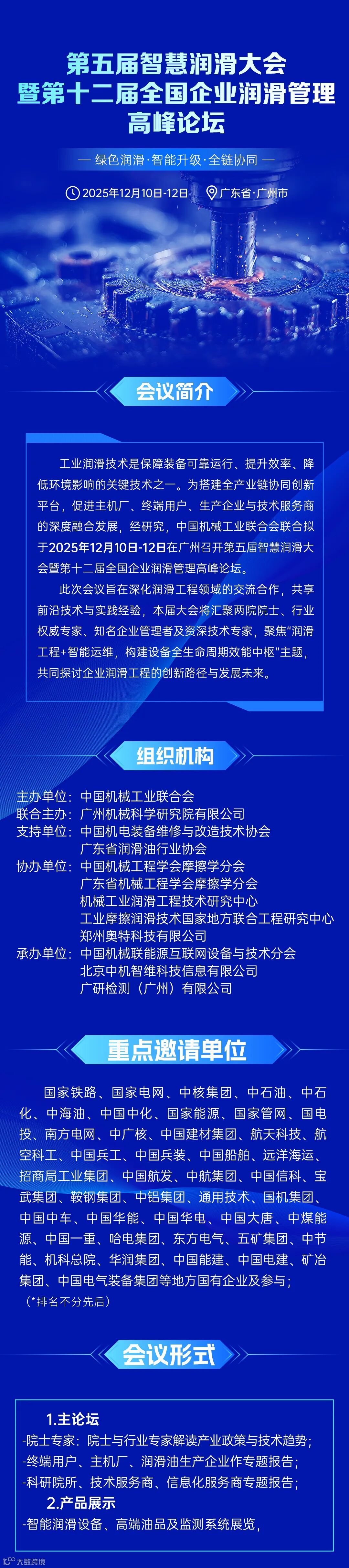 重磅 | 关于召开第五届智慧润滑大会的通知