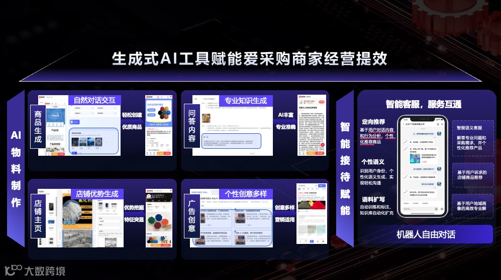 “数字+供应链”,柔性生产打通上下游“信息孤岛”,“生成式AIXB2B平台”,人机协作释放更多生产力。爱采购将数智化技术根植于发展基因之中,逐渐实现了从工具应用、辅助经营到驱动发展的功能转变,为产业发展注入智能的力量。