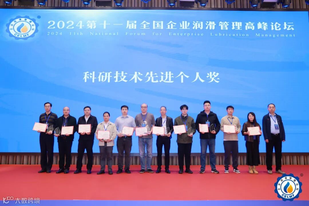 致辞环节后,大会颁发了“绿色润滑实践效益奖”、“卓越润滑技术创新奖”、“科研技术先进个人奖”、“优秀论文一等奖”、“优秀论文特等奖”、“科研技术先进集体奖”、“润滑管理示范单位奖”,近50名个人及单位代表上台领奖。