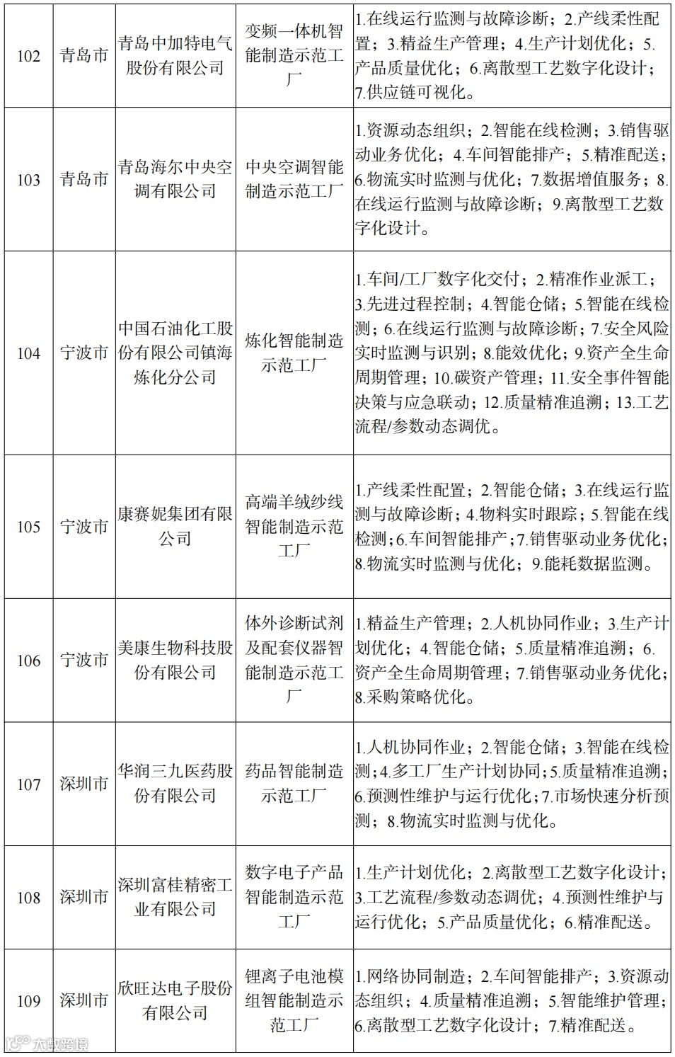 附件:1. 2021年度智能制造示范工厂揭榜单位名单