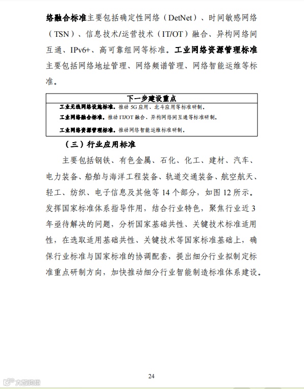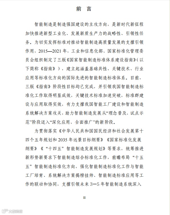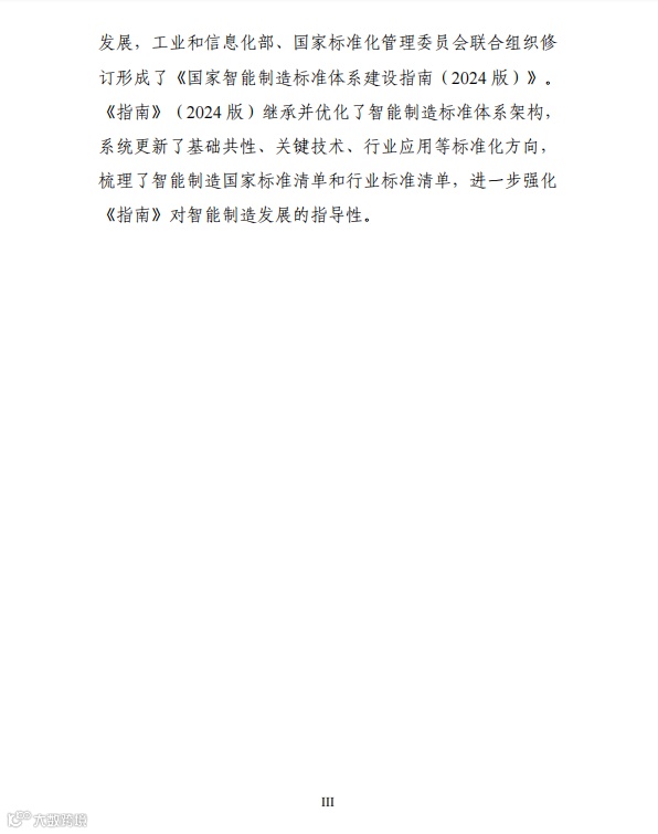 《国家智能制造标准体系建设指南(2024版)》继承并优化了智能制造标准体系架构,系统更新了基础共性、关键技术、行业应用等标准化方向,梳理了智能制造国家标准清单和行业标准清单,进一步强化《指南》对智能制造发展的指导性。