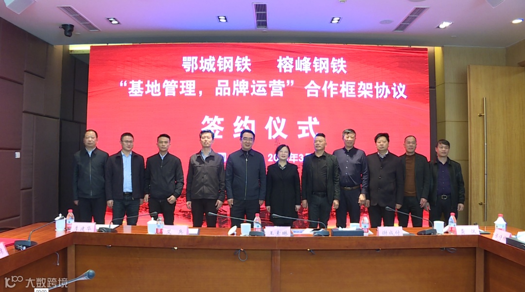 2021年3月25日,鄂城钢铁与十堰榕峰钢铁和十堰市政府相关领导齐聚十堰,签订“基地管理+品牌运营”合作框架协议。