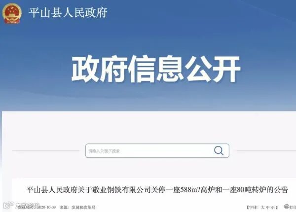 按照市政府办公厅下发的《关于做好2020年钢铁去产能工作的通知》要求,我县2020年需退出炼铁产能19万吨,炼钢产能42万吨,9月底前关停敬业集团有限公司相关冶炼设备。县委、县政府高度重视,主要领导亲自安排部署,敬业钢铁有限公司积极配合,市发改委及县政府相关部门驻厂督导见证,9月30日实施停炉,经过敬业集团施工奋战,当天按要求完成了对高炉和转炉的停炉工作,关停工作全部落实到位,圆满完成了省市下达我县的钢铁去产能任务。