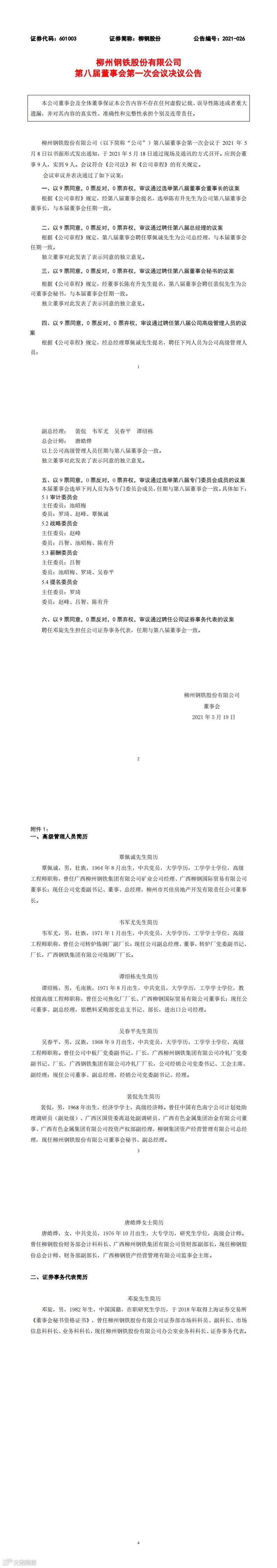 以下为柳钢股份公告原文(请上下滑动查看)