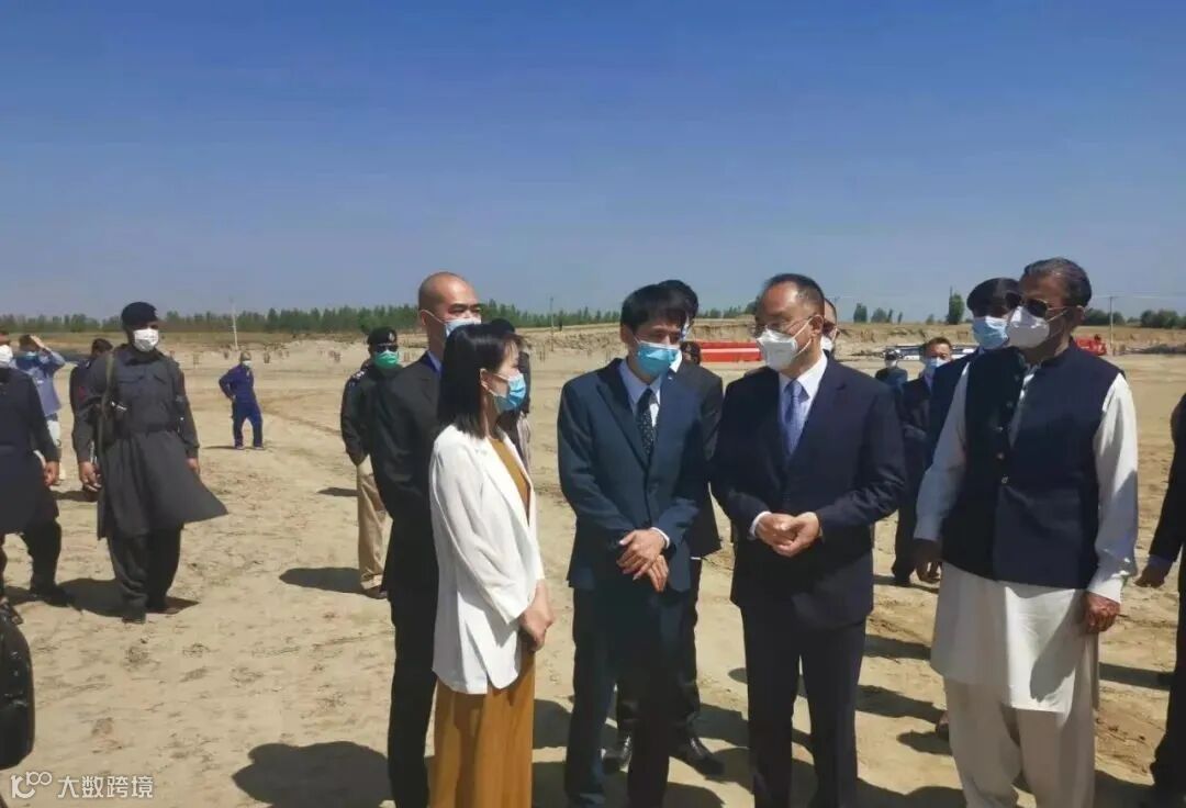 农融大使、中巴经济走廊主席阿西姆.萨里姆.巴伊瓦、KpK投资委员会主席哈三、工业部部长阿卜杜、世纪钢铁代表前往现场