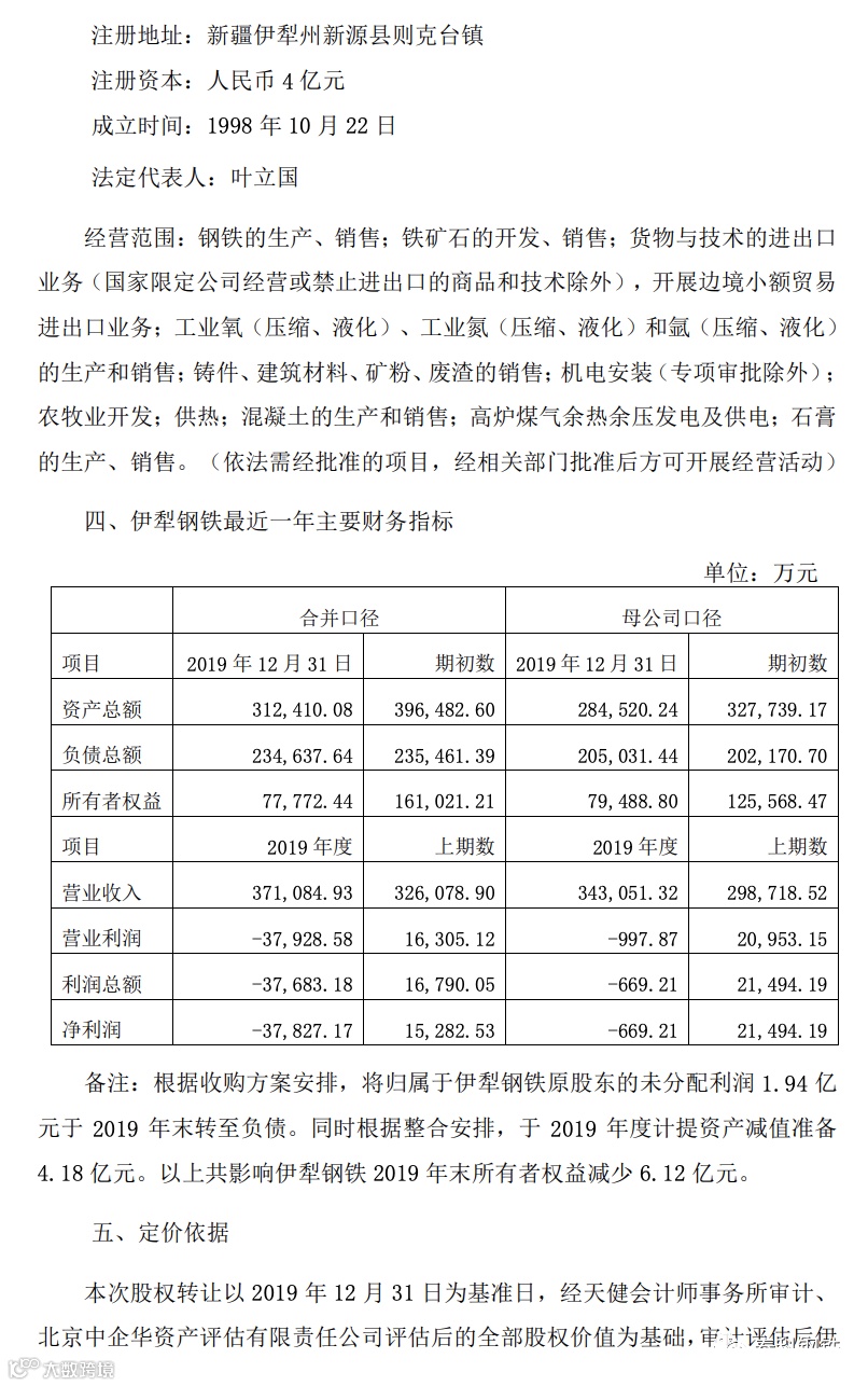这是短时间内,中国宝武收下的第二家钢厂!此前,八一钢铁11月13日晚间发布公告称,公司控股股东宝钢集团新疆八一钢铁有限公司的控股子公司新疆天山钢铁联合有限公司拟受让深圳九天清控投资合伙企业持有的新兴铸管新疆有限公司100%股权。11月13日,天山钢铁与九天清控签署了《股权转让协议》。本次股权转让以2019年12月31日为基准日,以公司经天健会计师事务所审计、北京中企华资产评估有限责任公司评估后的100%股权价值为基础,各方协商确定本次股权转让价款为21.81亿元。