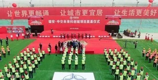 3月28日,雄安新区首批市场化项目之一——雄安·中交未来科创城项目奠基仪式在雄安新区举行,标志着雄安站枢纽片区3号地块正式开工建设。据悉,此项目占地约881亩,建筑面积约140万平方米,总投资约172亿元,建设周期3年。
