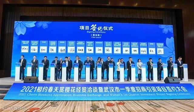 3月24日,武汉市举行2021相约春天赏樱花经贸洽谈暨武汉市一季度招商引资项目签约大会,现场共签约项目112个,总金额达3462.23亿元人民币。其中,投资金额过30亿元以上项目44个,过百亿元以上项目11个。签约项目集中在新一代信息技术、高端装备制造、新能源与新材料、汽车及零部件、现代金融、科技创新、商贸物流、数字经济等领域。