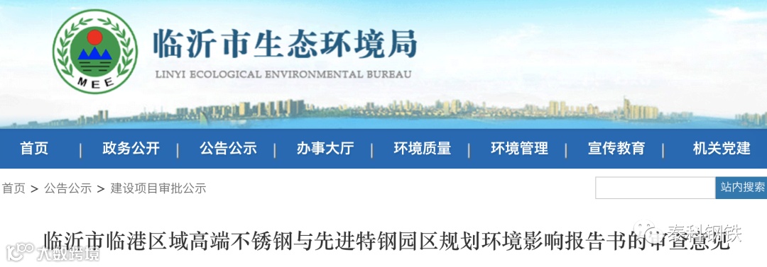 近日,临沂市临港区域高端不锈钢与先进特钢园区规划环境影响报告书的审查意见公示。