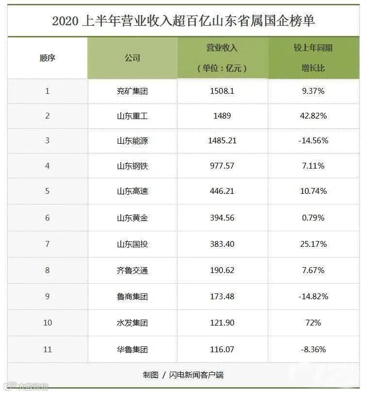 齐鲁网·闪电新闻9月2日讯 近日,山东省属国企陆续披露上半年财务报告,闪电新闻记者统计发现,已公开半年财务报告的27家省属国企中,山东重工以89.85亿元的净利润成为最赚钱的企业,兖矿集团则以1508.1亿元的业绩稳坐营收榜头把交椅,而山东钢铁上半年营业收入超970亿,有望跻身千亿俱乐部。