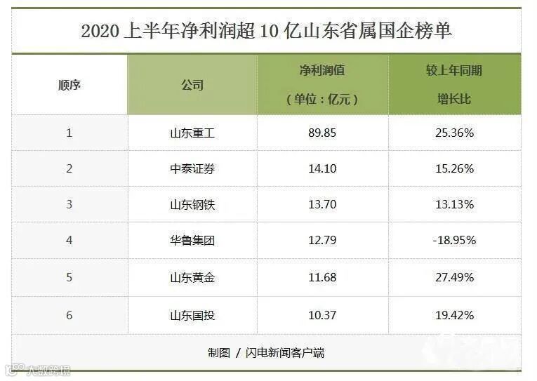 闪电新闻记者注意到,今年上半年利润总额排名第二(山东重工排名第一)的兖矿集团并未公布净利润的具体数据。但根据兖州煤业股份有限公司此前不久发布2020年半年报,今年上半年兖州煤业实现归属于上市公司股东的净利润46亿元,或许可以作为了解其大股东兖矿集团上半年利润空间的重要参考数据。