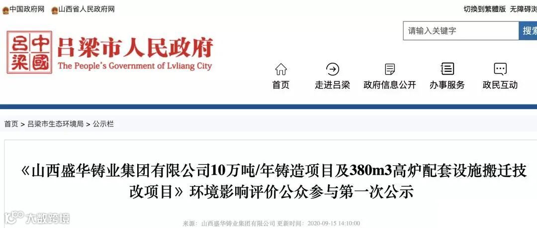 1、项目名称:山西盛华铸业集团有限公司10万吨/年铸造项目及380m3高炉配套设施搬迁技改项目