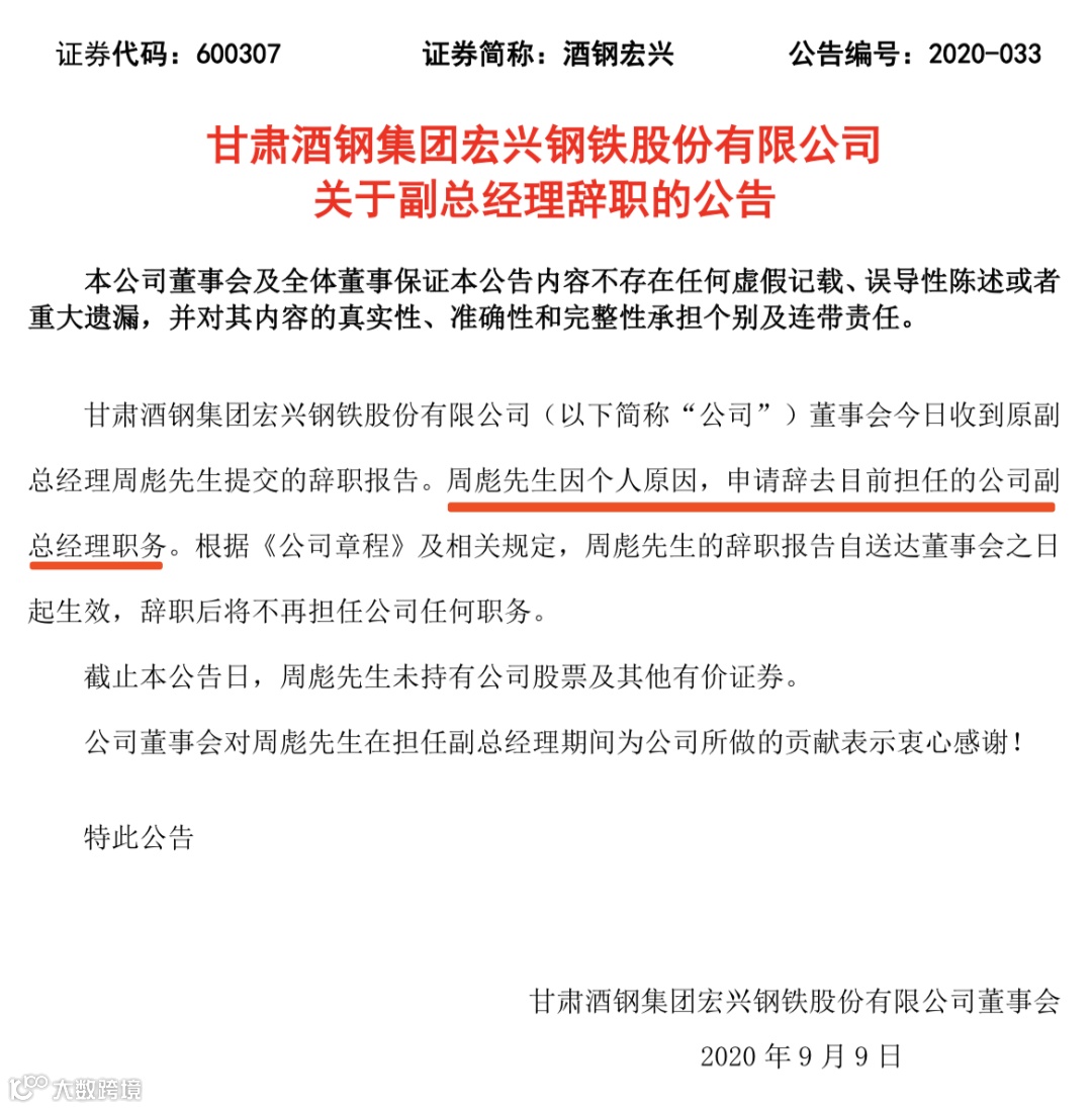 8月28日,甘肃省人民政府发布通知,蒋志翔任酒泉钢铁(集团)有限责任公司董事。