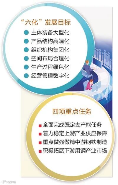组织机构集团化。加快推动企业兼并重组,着力构建以世界级大型集团为引领、国内具有较强影响力集团为支撑、新优专特企业为补充的梯次发展格局。2020年底,产量排名前10家钢铁企业粗钢产量占比达到60%,力争到2022年底提高到65%,大型企业集团整合上下游链条能力明显增强。