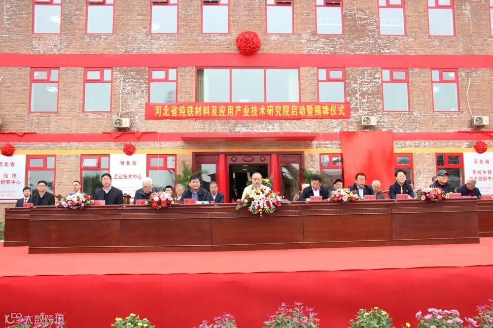 邯郸市科技局副局长靳远新、武安市政府副市长贺良、武安市科工局党组书记赵竹平、上海大学董瀚院长和公司董事长白居秉为“河北省纯铁材料及应用产业技术研究院”揭牌。现场200余名龙凤山员工和与会领导、专家一同见证了这一激动人心的时刻。