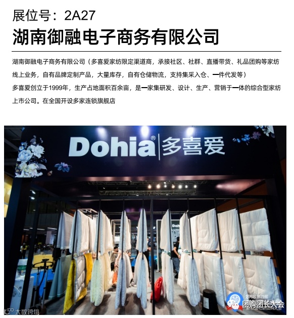 湖南御融电子商务有限公司(多喜爱家纺限定渠道商,承接社区、社群、直播带货、礼品团购等家纺线上业务,自有品牌定制产品,大量库存,自有仓储物流,支持集采入仓、一件代发等) 多喜爱创立于1999年,生产占地面积百余亩,是一家集研发、设计、生产、营销于一体的综合型家纺上市公司。在全国开设多家连锁旗舰店