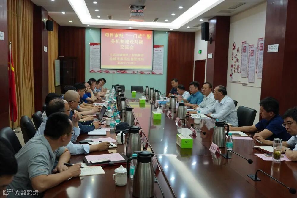 为落实盐城市委、市政府关于确保年内宝武盐城精品钢基地项目开工建设的指示和要求,7月23日,盐城市市场监管局主动对接服务宝武盐城精品钢基地项目,与宝武盐城钢铁工程指挥部联合召开项目审批“一门式”服务机制建设对接交流会。宝武盐城钢铁工程指挥部总指挥助理刘国斌一行,市市场监管局局长、党组书记刘永前,副局长、党组副书记季鹏飞,副局长杨樾,滨海港工业园区副主任龚春红等参加交流会。