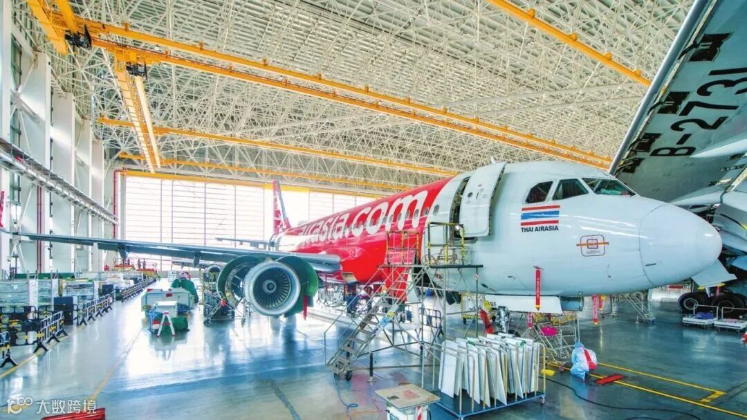 位于海口江东新区临空经济区的海南自贸港一站式飞机维修产业基地定检机库,一架来自泰国的飞机正在进行零部件更换。海口市融媒体中心记者 苏弼坤 摄