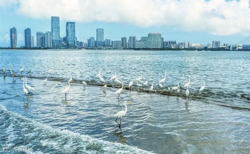 成群的白鹭在水清岸绿的海口湾栖息觅食。记者 石中华 摄