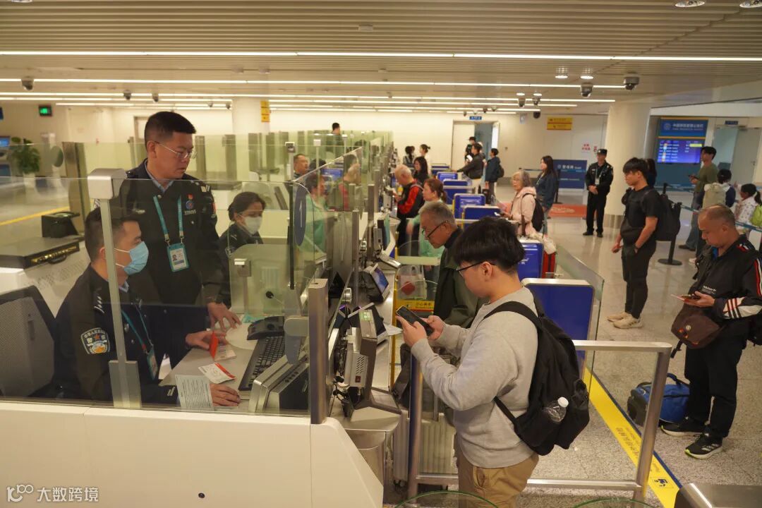 美兰边检站执勤民警为入境旅客办理边检手续。美兰边检供图