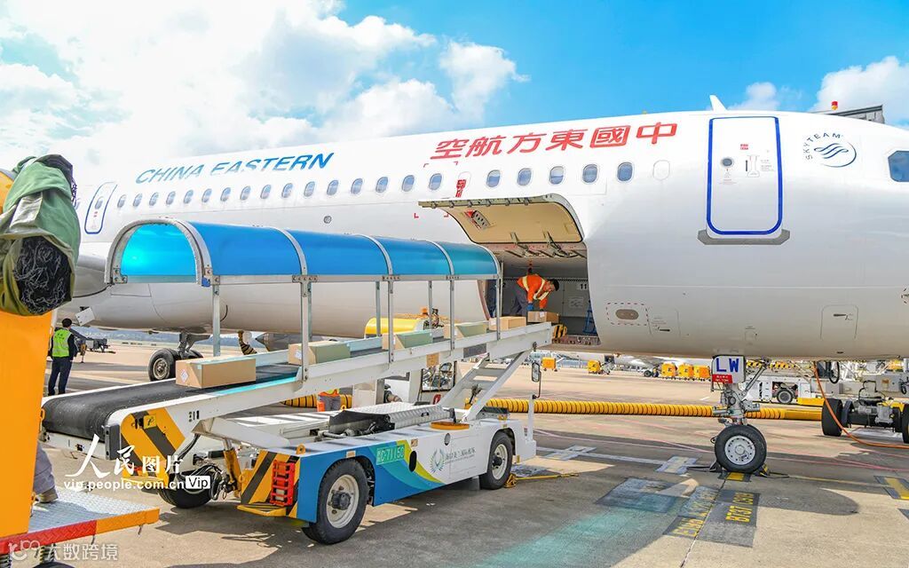 海南自贸港全岛封关后,海口美兰国际机场航班正在承运享受加工增值免关税政策出岛的货物。苏弼坤 摄(影像中国)