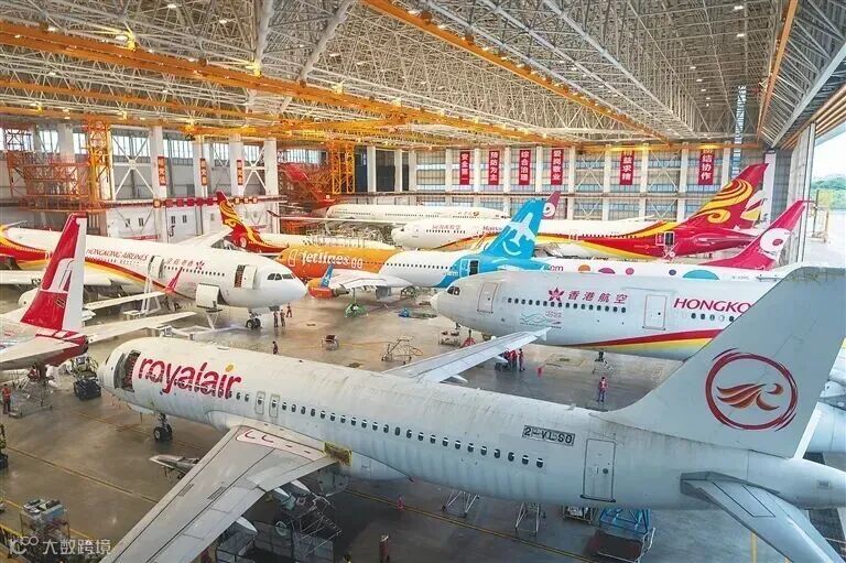 国庆假期,海南自贸港一站式飞机维修产业基地内依旧热火朝天。大修机库内,十几架大型客机整齐地停放,维修工程师们在机库内穿梭,并不时地搭载升降平台前往飞机的机翼、发动机、起落架等部位进行检修。