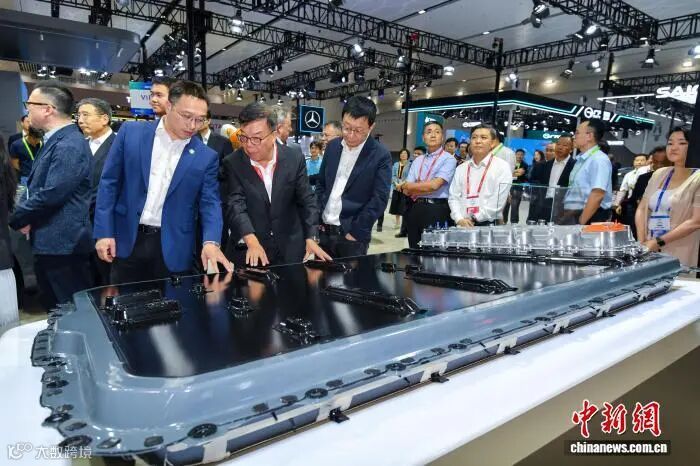 2025世界新能源汽车大会展出的动力电池吸引参观者。中新社记者 骆云飞 摄