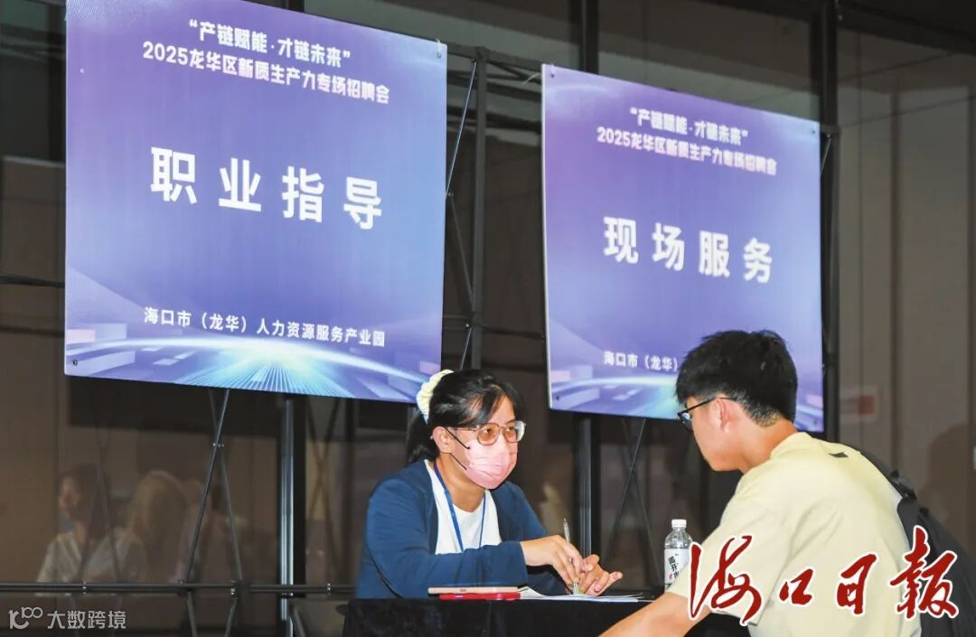 6月24日,在“产链赋能·才链未来”2025龙华区新质生产力专场招聘会上,工作人员现场解读就业创业政策并提供职业指导。海口市融媒体中心记者 康登淋 摄