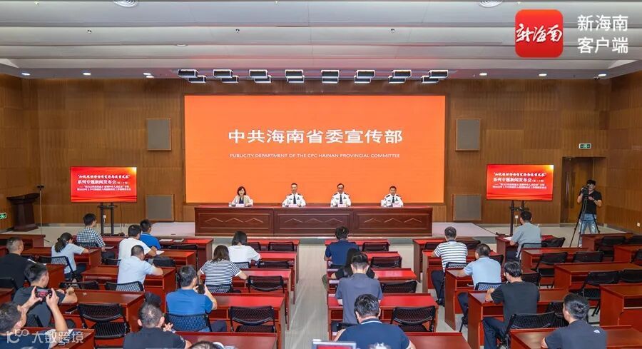 “加快推动海南自贸港高质量发展”系列专题新闻发布会(第三十场)——“助力口岸高效通关 便利中外人员往来”专场暨2025年上半年海南出入境边防检查工作新闻发布会现场。记者 马一鸣 摄