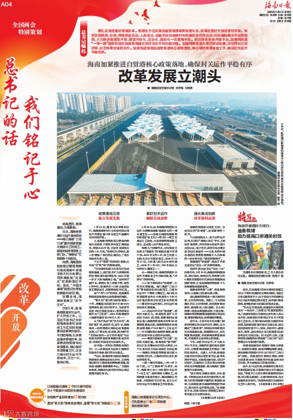2025年,是海南自贸港封关运作、扩大开放之年。以习近平总书记在听取海南省委和省政府工作汇报时的重要讲话精神为指引,今日的海南,扎实推进重点领域改革,加紧推进自贸港核心政策落地,精心做好各项准备工作,正全力确保封关运作平稳有序、万无一失、首战必胜。