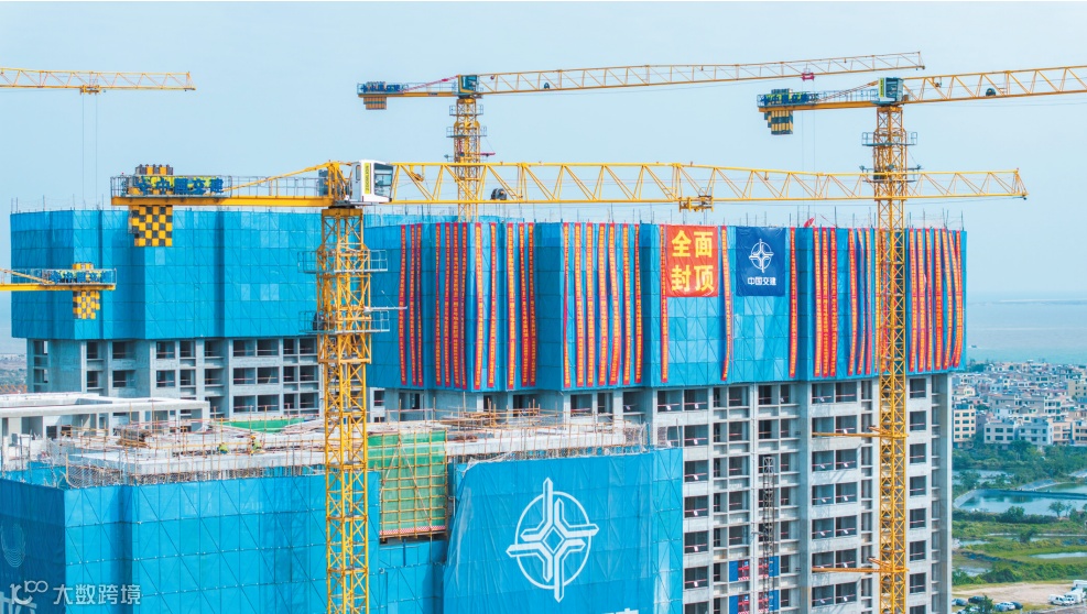 随着最后一方混凝土注入5号楼顶楼
