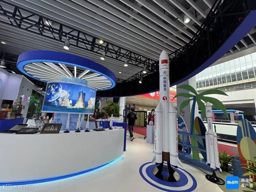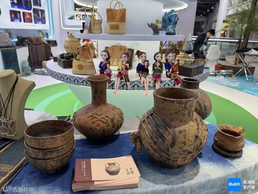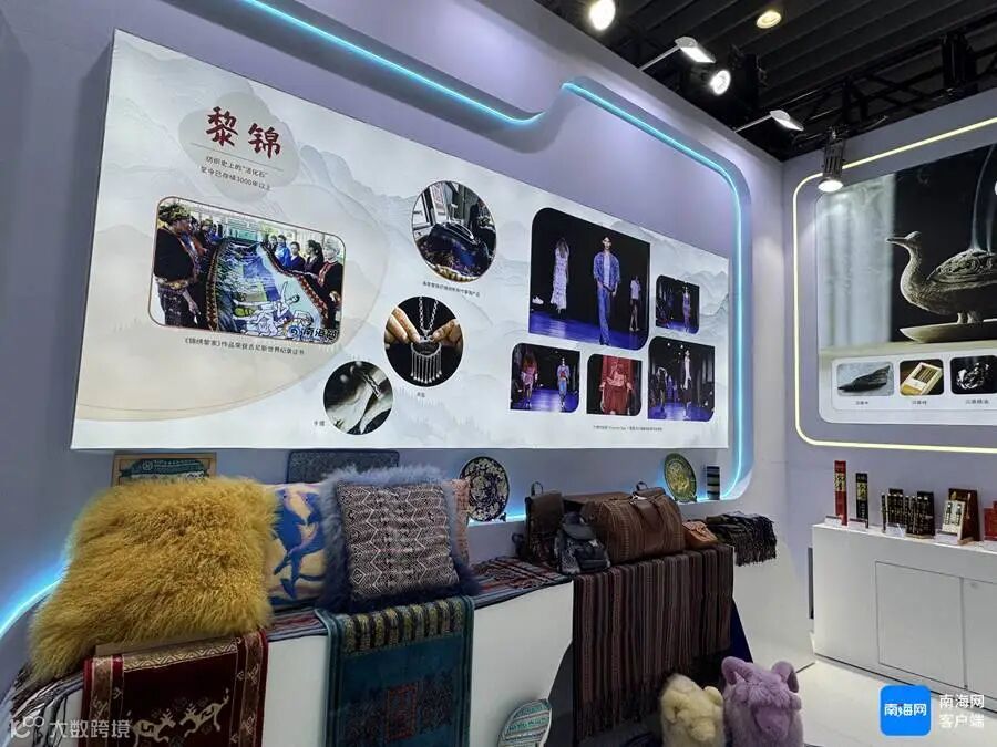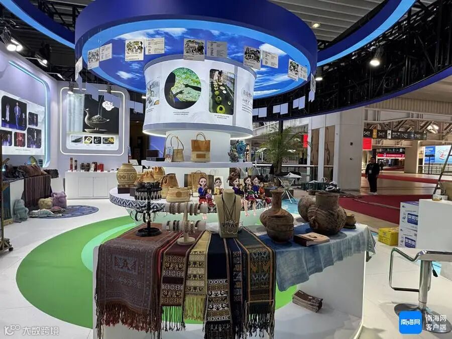 南海博物馆考古文物、黎锦、航天旅游元素亮相海南馆。记者 易帆 摄