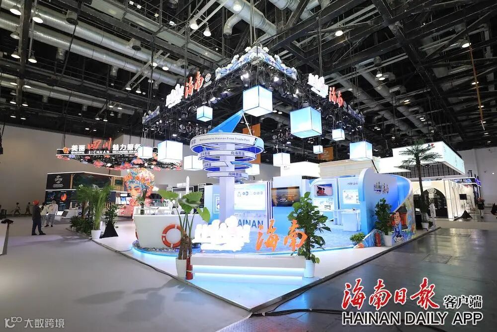 11日下午,记者在海南馆看到,整个展馆以蓝绿色为主,体现了绿色、活力的视觉效果。据悉,海南馆设置主题展示区、直播洽谈区、情景驿站区等区域。其中,主题展示区重点推介海南自贸港开放政策、服务贸易和数字贸易发展政策,展示国际旅游、高端消费、国际展会等十大特色产业高质量发展成效;直播洽谈区推介海南旅游文化资源、特色消费街区、餐饮美食水果及市县园区招商引资政策等;情景驿站区以海南环岛旅游公路驿站为主线,展示驿站打卡点。