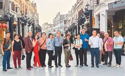 马来西亚七个乡团代表在海口骑楼老街合影。