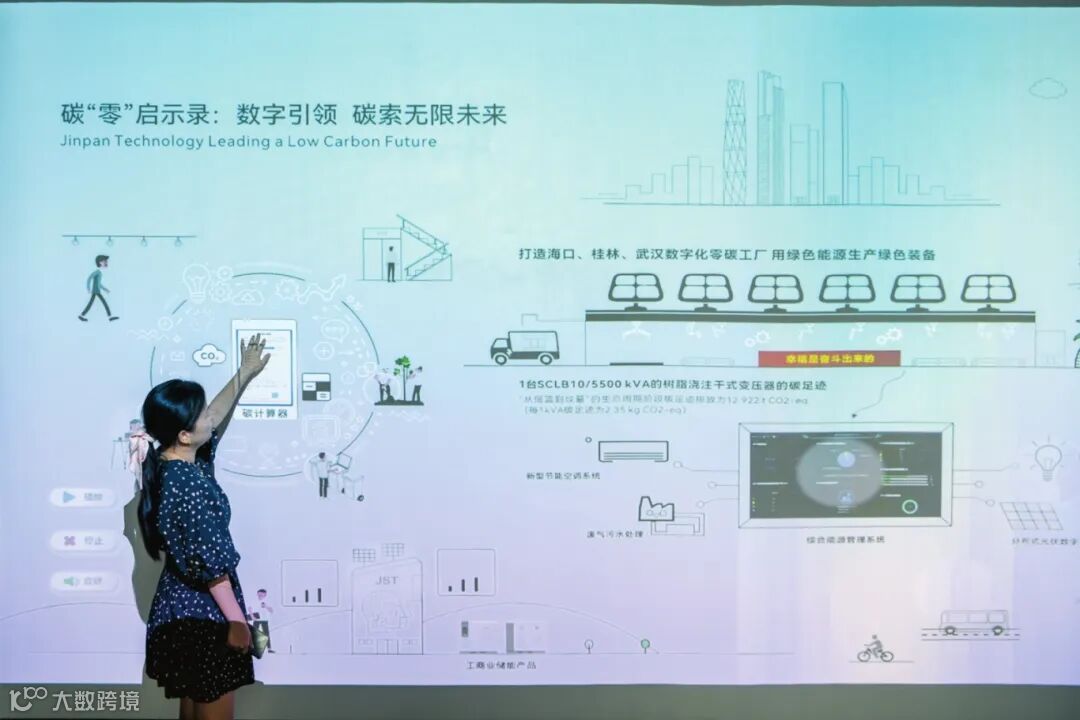 在海南金盘智能科技股份有限公司海口数字化工厂,工作人员正在介绍数字化零碳工厂用绿色能源生产绿色装备。海口日报记者 杨鹤 摄