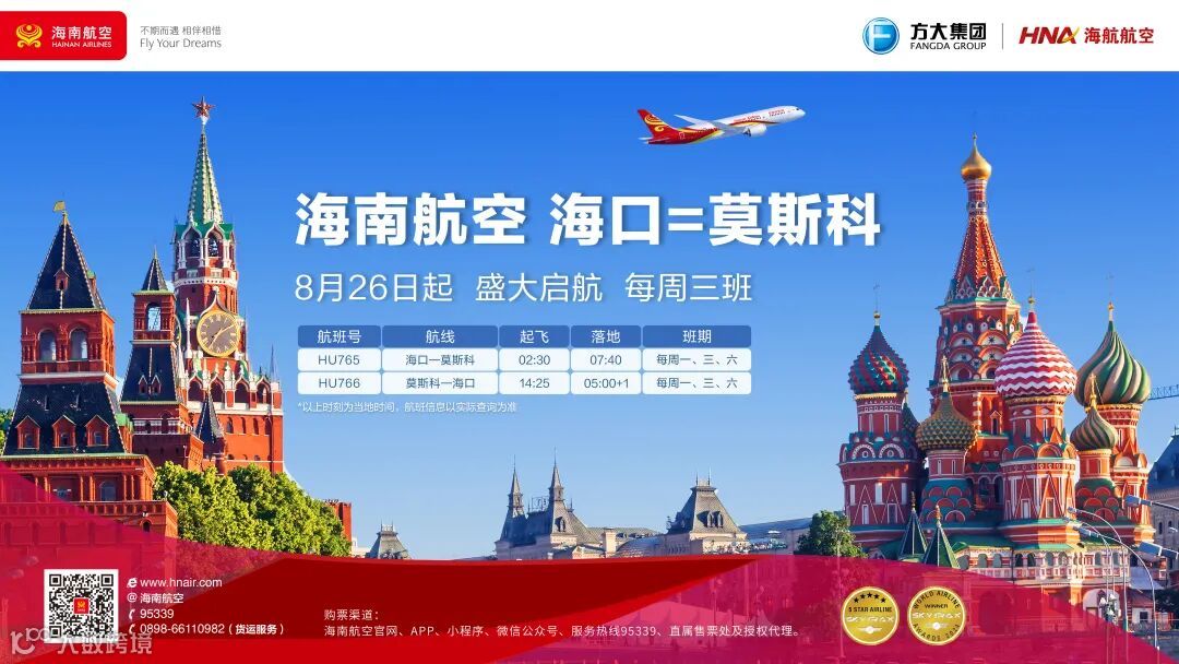 作为海南航空在海口出港的第12条国际及地区航线,海口—莫斯科航线将对海口、莫斯科两地的经济发展、人文交流起到积极的促进作用,搭建起海南通往俄罗斯的便捷桥梁,进一步促进海南自由贸易港建设。