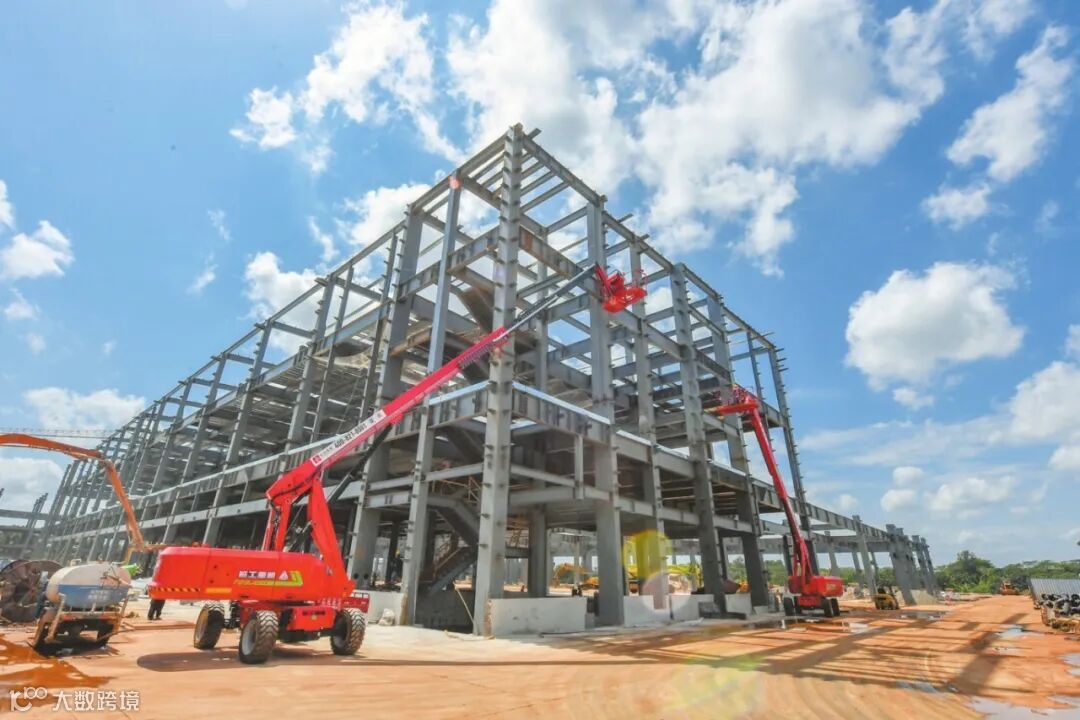 5月16日,在中通快递海南总部及航空物流枢纽基地项目现场,施工人员正在安装钢结构。海口日报记者 孙士杰 摄