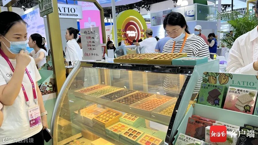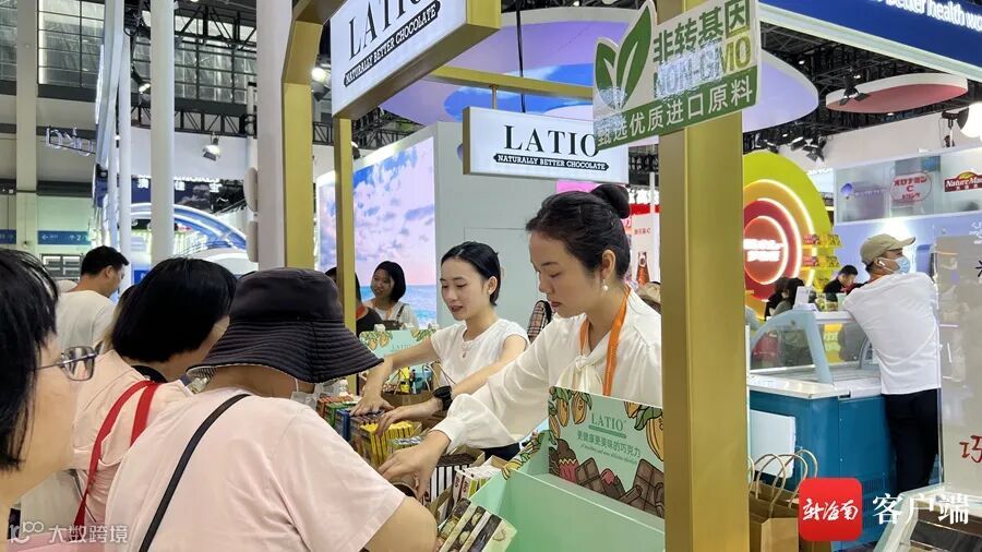 4月15日,第四届中国国际消费品博览会(简称“消博会”)期间,位于3号高端食品保健品展馆的LATIO加拿大巧克力展区,参观者可免费试吃多种巧克力,感受甜蜜的滋味。