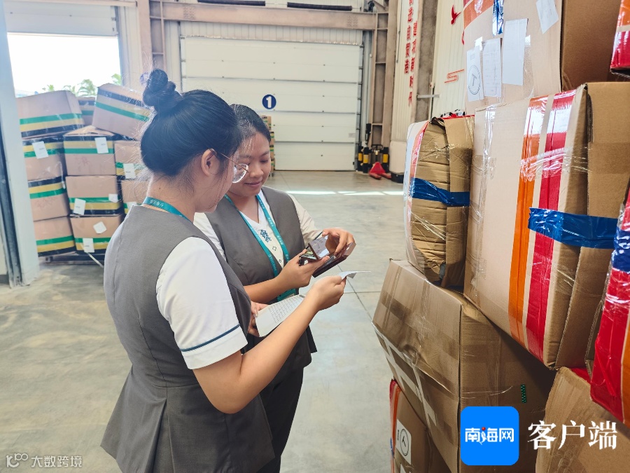 海口美兰机场工作人员核对货品清单。海口美兰机场供图