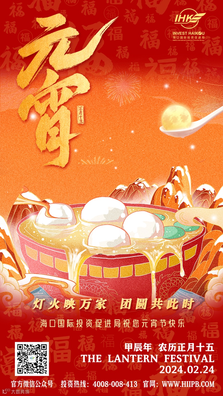 灯火映万家,团圆共此时,海口国际投资促进局祝您元宵节快乐!