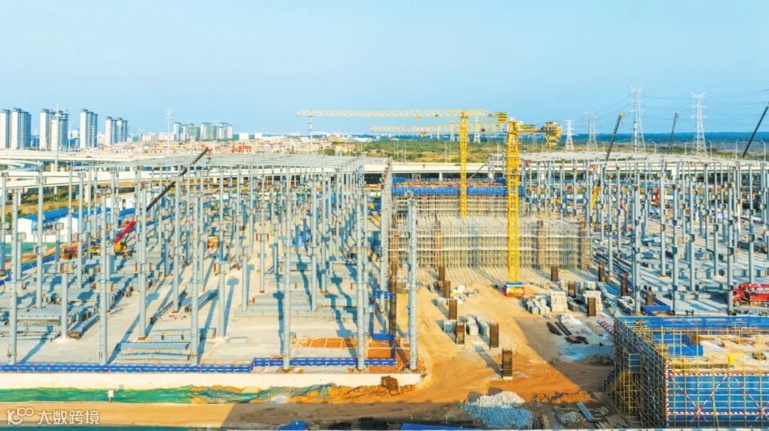 作为海口国家高新区引进的现代化智慧物流新基建项目,近日,深国际·海口智慧供应链基地项目钢结构框架施工进入收尾冲刺阶段,项目整体预计四季度实现全面完工。3月11日,记者走进项目工地看到,大型塔吊正挥舞铁臂进行有序吊装,运输施工材料的车辆来回穿梭,190余名施工人员分布在各作业面,有条不紊地推进节点进度。项目经理韩庆炜介绍,目前该项目正重点进行仓库钢结构吊装及卸货平台的钢筋混凝土结构施工作业,预计今年年中可完成主体结构封顶。